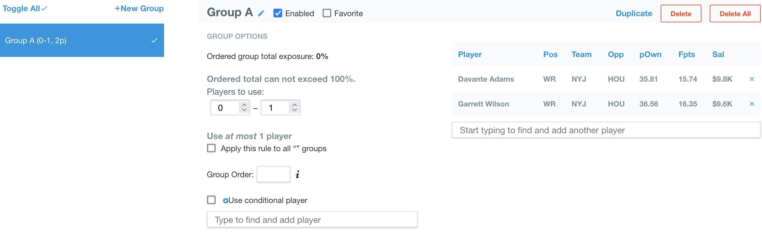 In our NFL DFS optimizer, LineupHQ, I plan to make a max-of-1 rule for Garrett Wilson and Davante Adams. I have a hard time seeing both putting up ceiling performances.