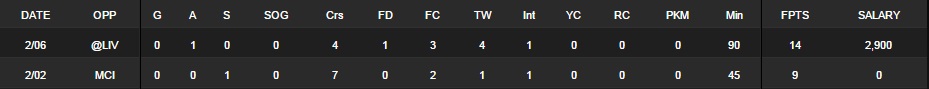 Khazri racked up seven crosses in just one half against Manchester City, and then followed that up with a stat-stuffing performance versus Liverpool. Assuming he’s back in the starting XI, Khazri is a terrific salary saver in the midfield.