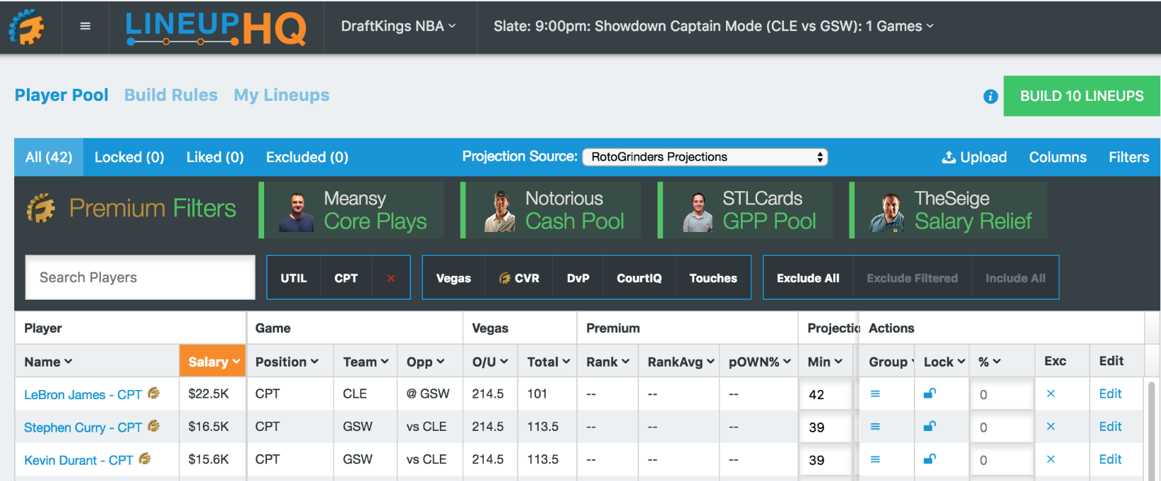 We’ve also added support for one-game contests on both FanDuel and DraftKings for the NBA, as well as for MLB and PGA. The work doesn’t stop here though, so be sure to check out the LineupHQ Release Notes for a list of improvements as they’re introduced.