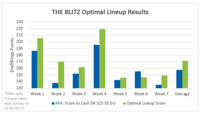 - THE BLITZ optimal lineup has cashed in 6 out of the 7 weeks