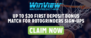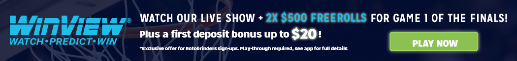 RotoGrinders is excited to be partnering with WinView and we’ve got some exciting promotions to get you in on the action. We’re kicking things off with two $500 Freerolls for Game 1 of the NBA Finals and will have a live show to help you figure things out. Plus you can get an exclusive first deposit bonus of up to $20 if you join through our links.