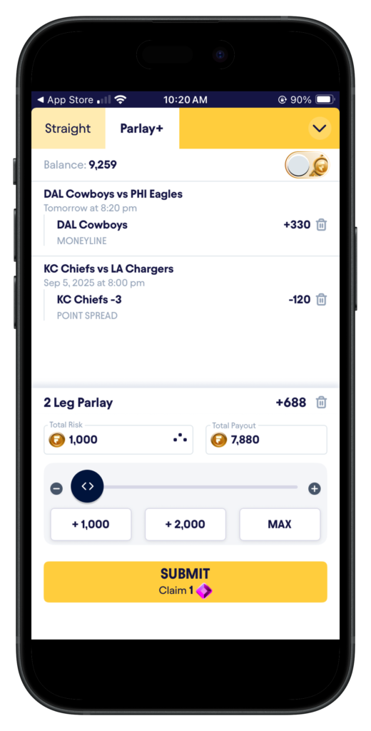 Fliff functions like many other social sportsbooks. Its Fliff Coins are the equivalent of Gold Coins which have no monetary value. They’re free to earn and allow you to play for fun, though you can purchase more if you want to.