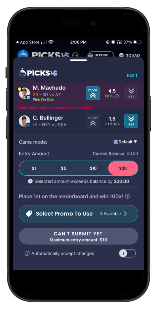 - Build a contest of 2-8 players by picking whether they’ll go Higher or Lower than the listed projection.